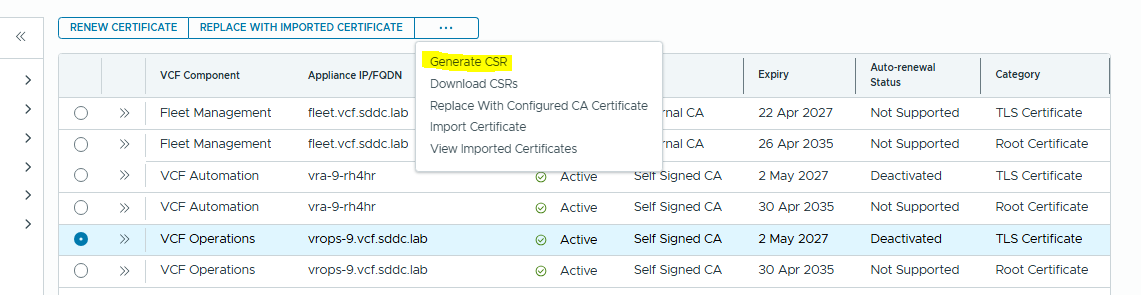 Now we can generate a CSR, and replace the certs directly from the CA.