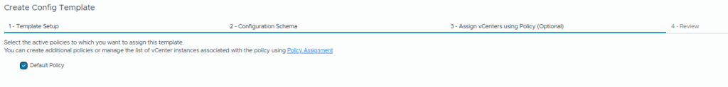 Policies can be used to target specific vCenters in your environment, but in our example we’ll just be targeting all vCenters so we’re just selecting the default policy.