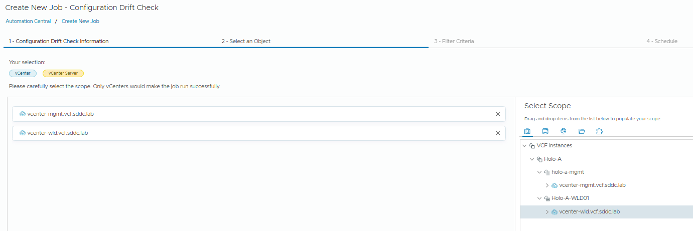 Drag and Drop the vCenters we want to schedule.