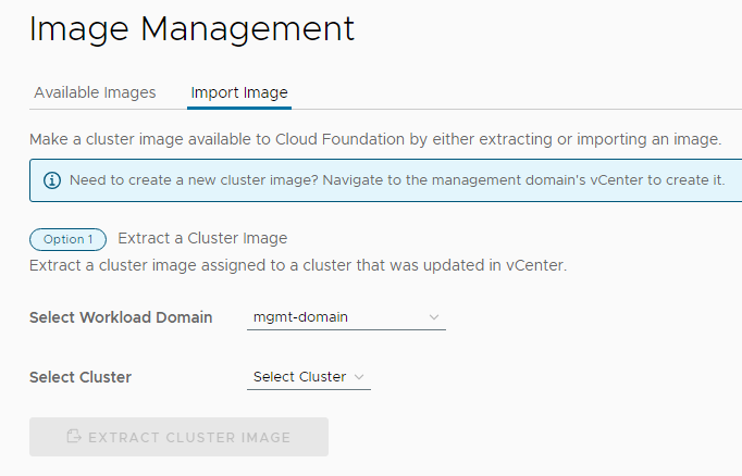 Import the vLCM Image to SDDC Manager – with Option 1 it will pull it straight from the vCenter into SDDC.